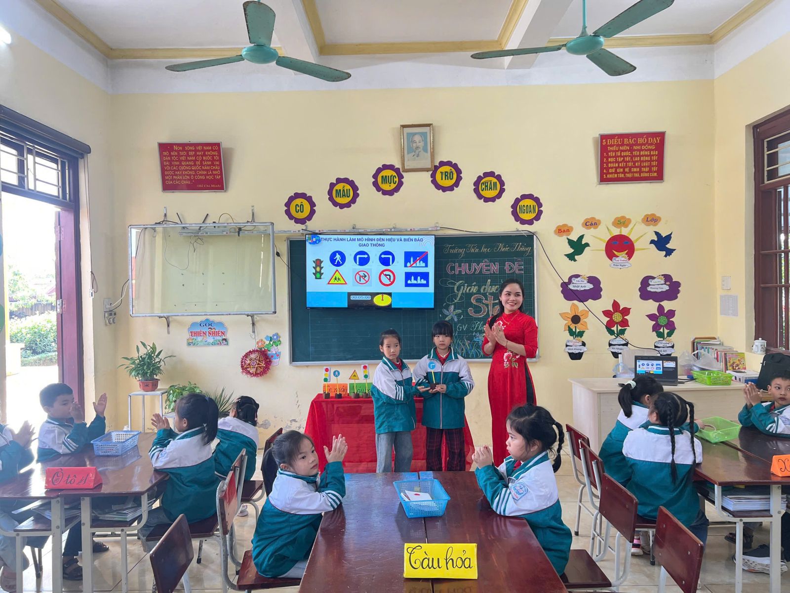 Ngay từ những phút đầu, không khí lớp học đã trở nên đầy năng lượng. Với sự hướng dẫn tận tình của giáo viên, các em học sinh được: khám phá các tình huống giao thông gần gũi trong đời sống hằng ngày. Ngoài ra các em còn nhận biết ý nghĩa một số biển báo giao thông phổ biến một cách trực quan, sinh động, tự tay thiết kế và hoàn thiện mô hình biển báo bằng giấy, bìa, vỏ hộp sữa… – vừa tỉ mỉ, vừa sáng tạo. Đặc biệt qua việc thực hành nhóm để đưa ra quyết định an toàn trong từng tình huống giả định.